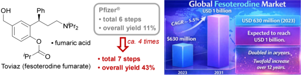 Development of the synthetic route to 5-hydroxymethyl tolterodine, a key synthetic intermediate of Toviaz, via an organic solvent-free Rh-catalyzed asymmetric 1,4-addition
