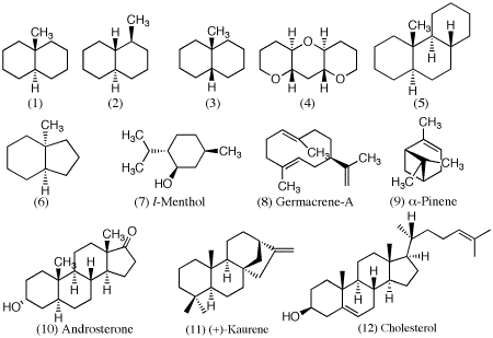 (b) 下記の化合物について立体配座を含めた構造を図示せよ。